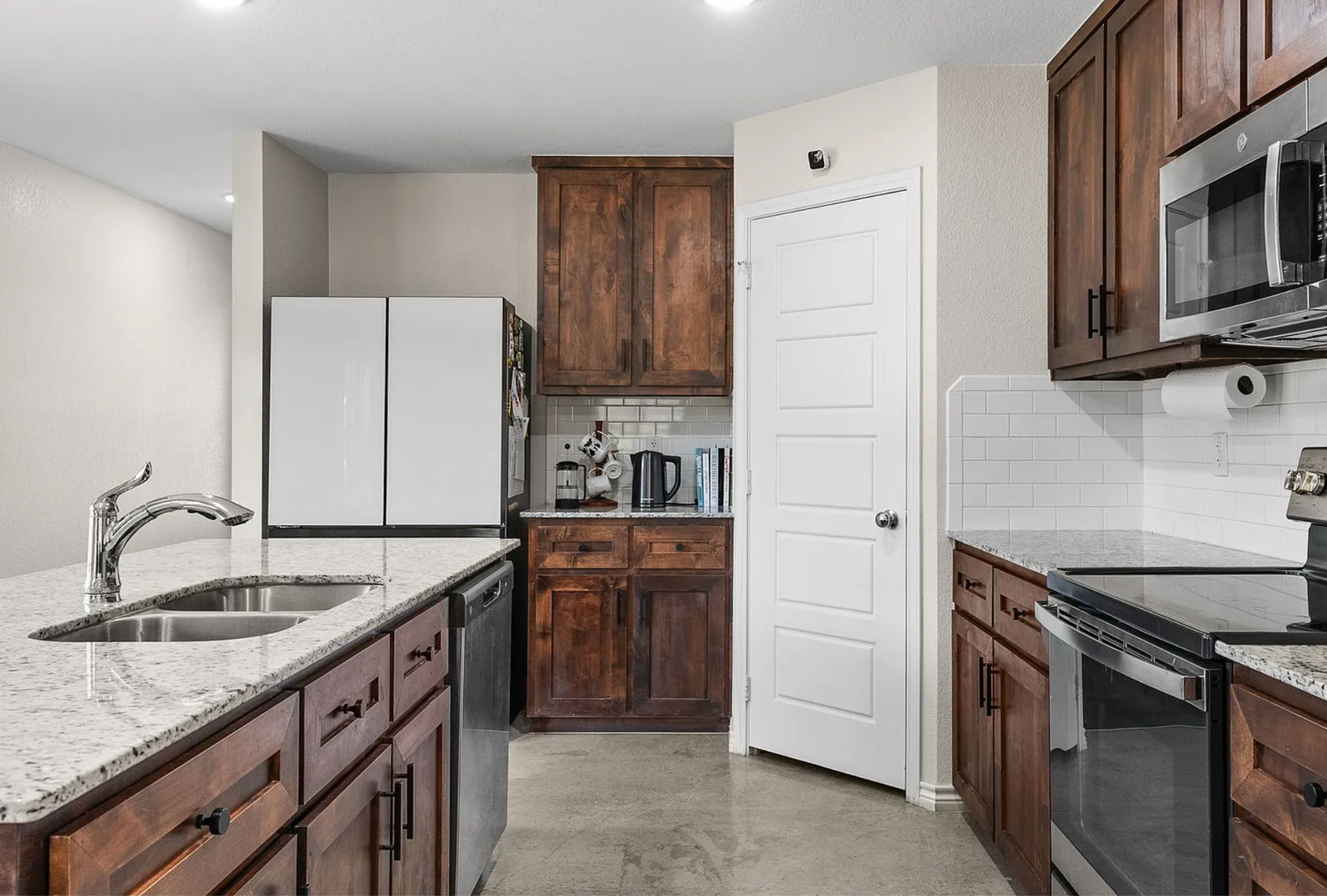 Welcome to this Stunning 4-Bedroom, 2.5 bath Home in Copperas Cove Prime Location! Nestled in a family-friendly neighborhood, this home is just a short walk from top-rated schools and scenic parks. Step inside to discover sleek floors throughout, combining durability with modern style. The spacious open-concept layout is perfect for entertaining, featuring a beautifully designed kitchen with a huge center island, quartz countertops, stainless steel appliances, and a massive walk-in pantry. Rich wood cabinetry adds warmth and elegance to the space. The primary suite is a true retreat, boasting a generous walk-in closet, double vanity, and a luxurious walk-in shower. Outside, the large covered patio provides the perfect spot for gatherings, overlooking a private, oversized backyard, ideal for cozy evenings under the stars. Come see for yourself!
